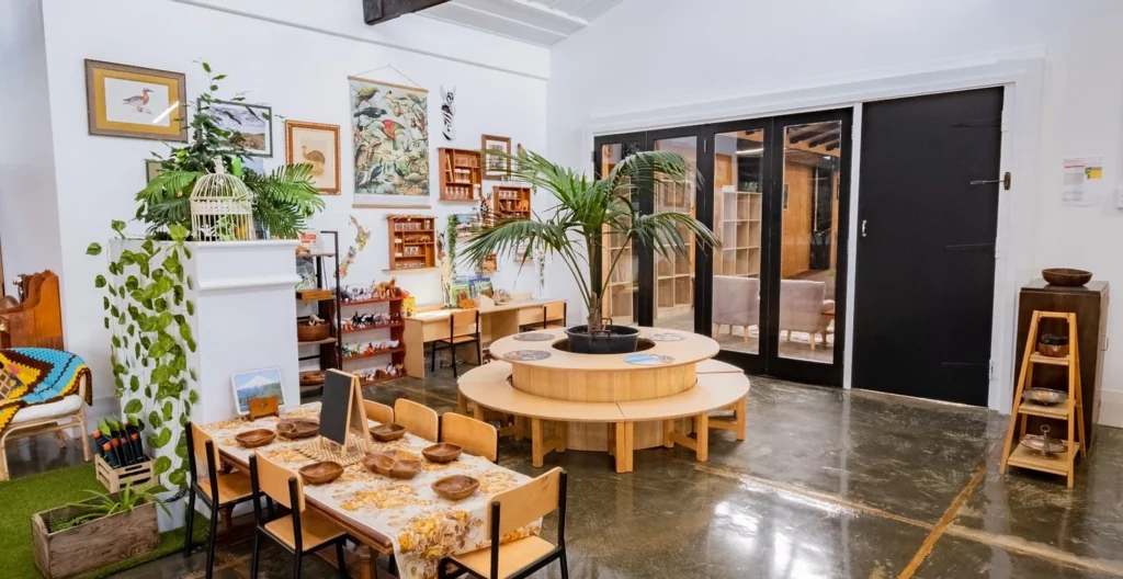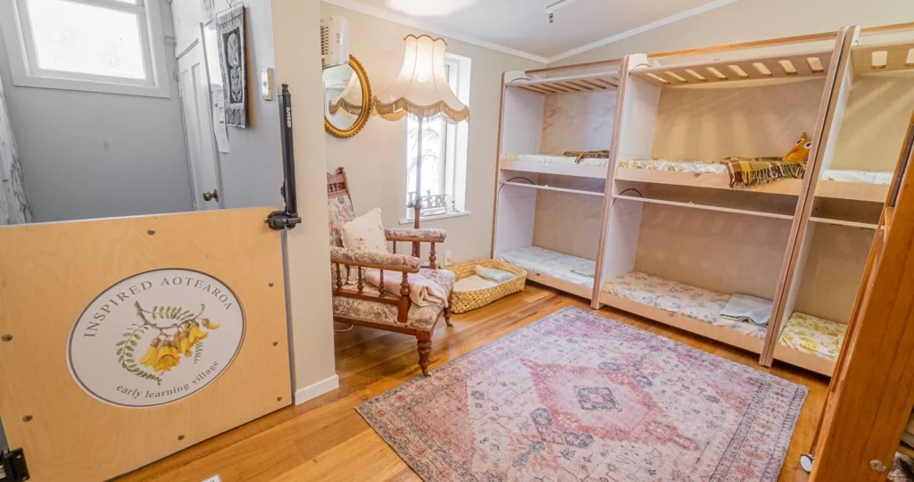 Understanding the specific requirements of Inspired Aotearoa, we designed and manufactured custom dividers and gates. These were meticulously crafted to provide functional division within the large open classrooms, while also adhering to the centre’s unique aesthetic preferences. The brief called for an antique, retro, ‘grandparents-home’ vibe, which made material selection and coating a crucial part of the process. Play’n’Learn retro furniture was then paired with upcycled furniture from antique stores around Auckland.
