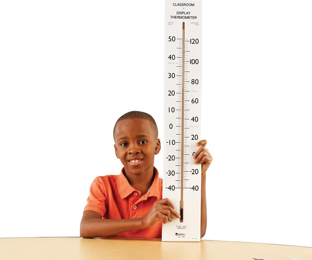 This large, wall-mountable thermometer shows the temperature in both Celsius and Fahrenheit measurements. Use it on a daily basis to improve children’s mathematical skills, to discuss weather concepts, and improve scientific vocabulary. Keep a record of daily temperatures to create a graph of monthly temperatures and use it when discussing seasons and weather patterns.